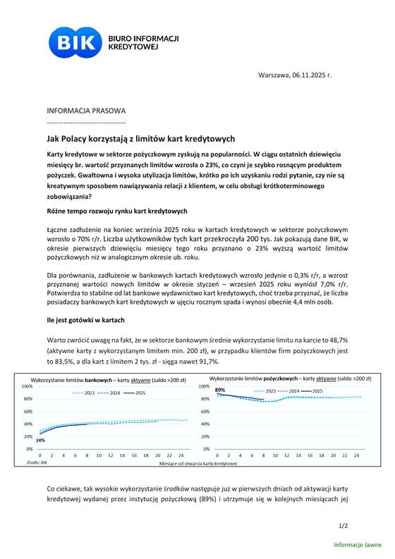 BIK IP Pożyczkowe karty kredytowe 06 11 2025 r