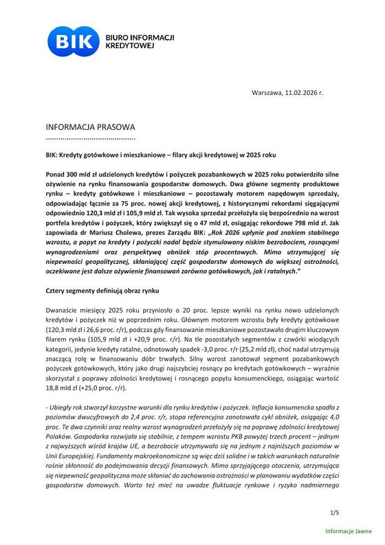 IP BIK_Podsumowanie 2025 na rynku kredytów i pożyczek. Prognozy na 2026_11.02.2026
