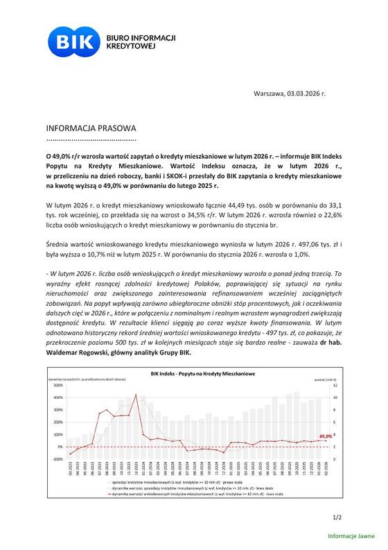 BIK Indeks Popytu na KredytyMieszkaniowe w lutym br 2026 03 03
