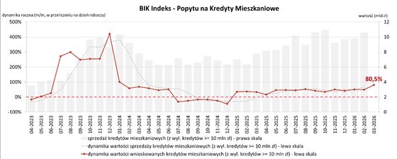 O 80,5% r/r wzrosła wartość zapytań o kredyty mieszkaniowe w marcu 2026 r.